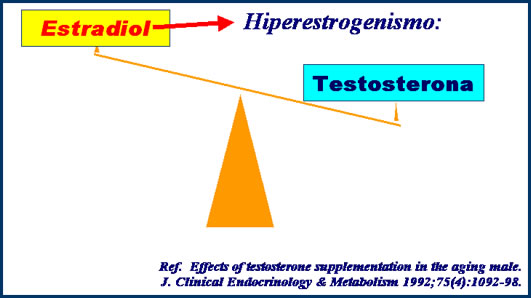 Então na Andropausa, temos duas deficiências associadas causando vários sintomas e ou doenças. Uns pela falta da testosterona e outros pelo excesso do estradiol.