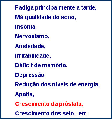 Os sintomas da deficiência da Testosterona são relacionados à parte física e motora, que associados ao aumento do Estradiol causam grandes danos ao homem.: (quadro 5)