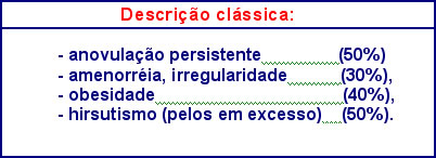 A primeira referência sobre a existência de cistos ovarianos foi descrito por Stein & Leventhal em 1935, examinando 7 pacientes com amenorréia, hirsutismo e ovários aumentados de volume com características policísticas (04 obesas) Ele também descreveu os achados patológicos clássicos: