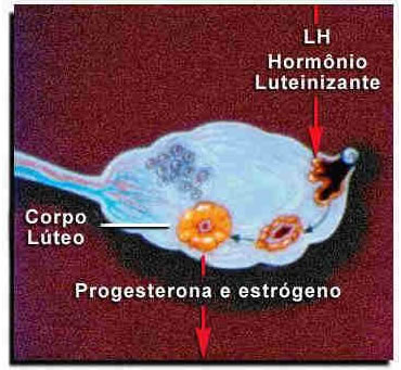 Finalmente o Hormônio Luteinizante irá expelir o óvulo maduro para fora do Corpo Lúteo e este se encaminhará ao útero a fim de esperar a fecundação. (Quadro 4). Caso ele seja fecundado, o óvulo produz a Gonadotrofina Coriônica (HCG) que irá proteger a fecundação e broquear os hormônios que liberam a menstruação, pois senão poderá haver o abortamento do óvulo fecundado