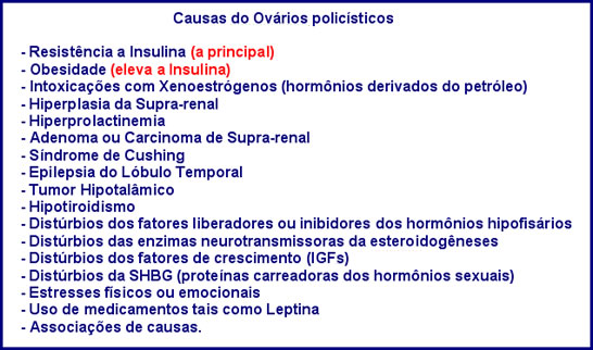 Qualquer alteração no eixo do Hipotálamo - Hipófise - Supra-renal - Ovário pode desencadear a Síndrome. No Quadro 8 exemplificamos alguns.