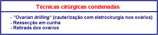 De todos os tratamentos que existem para a Síndrome dos Ovários Policísticos, a literatura mundial contra-indica o uso das cirurgias como tratamento da síndrome (Quadro 9)