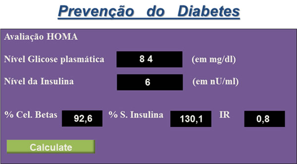 No exemplo acima o paciente tinha apenas 84 mg/dl de glicose no sangue, mas sua Insulina era de 23 nU/ml. Com calculo, vemos que a porcentagem de células pancreáticas está trabalhando a 229% para fornecer a Insulina necessária para diminuir a glicemia, fato esse que sobrecarrega em muito a capacidade do pâncreas em produzir Insulina e que acarreta seu esgotamento e a Diabetes 1